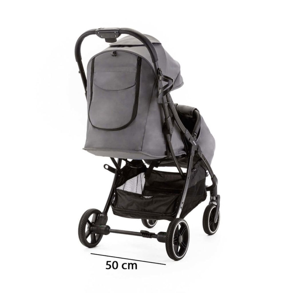 Die Rückenlehne lässt sich bequem und stufenlos mit einem Riemen verstellen (sogenannte stufenlose Rückenlehnenverstellung) und die Fußstütze hat 2 Verstellmöglichkeiten. Im Verdeck befindet sich ein Belüftungsfenster mit Moskitonetz, durch das Sie ihr Kind im Blick behalten können. An der Rückseite des Verdeckes finden Sie ein Panel mit einer Tasche für Kleinigkeiten, das sich nach dem Abnehmen zu einem großen Belüftungsfenster entfaltet.
